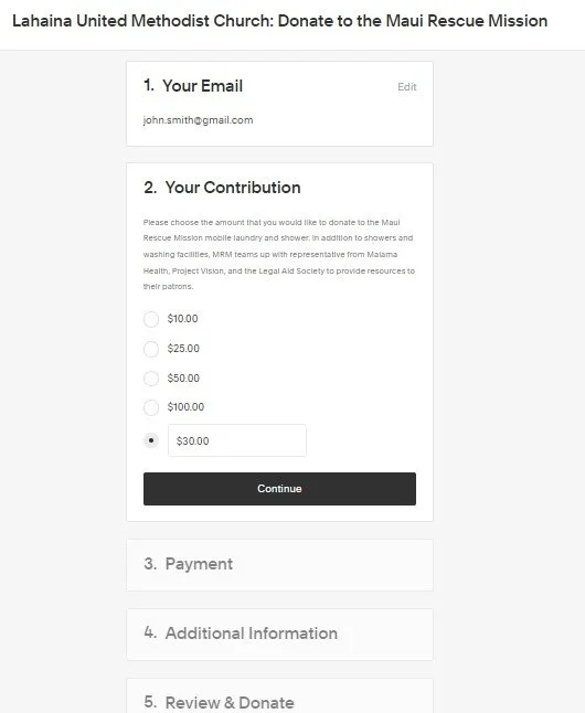 Every Wednesday and Friday, from 10 AM to 2 PM, the Maui Rescue Mission provides a hot shower, clothes washing machine and dryer, health screening, and counseling. and lunch to up to 78 customers. On Wednesdays, they are at Lahaina Baptist Church, and on Fridays, we have been hosting a brunch fellowship and Bible Study. At the Friday event, we have a nurse on hand and volunteers to help our guests sign up for food benefits and housing. We hand out “dignity bags” of toiletry items containing soap, toothpaste, shampoo, deodorant, toothbrushes, combs, washing detergent, etc. You may drop off toiletries at our office.